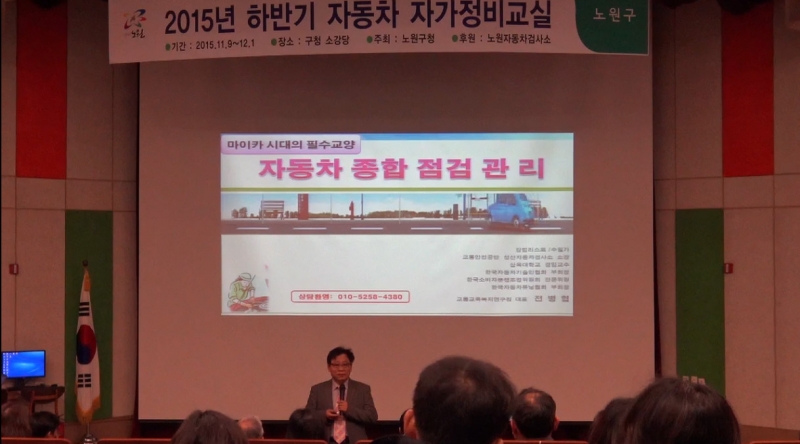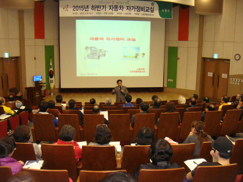 구민 및 지역 주민을 위한 2015 자동차정비교실이 노원구청 대강당에서 있습니다.
